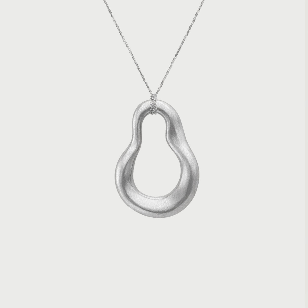 Where softness meets structure. The Drop Pendant Necklace features a fluid, teardrop-inspired charm suspended from an adjustable cord for a modern, minimal finish. Plated in brushed silver, the molten form reflects light with every move—equal parts bold and effortless. Style it long over knits or cinch it higher for a polished, sculptural touch.